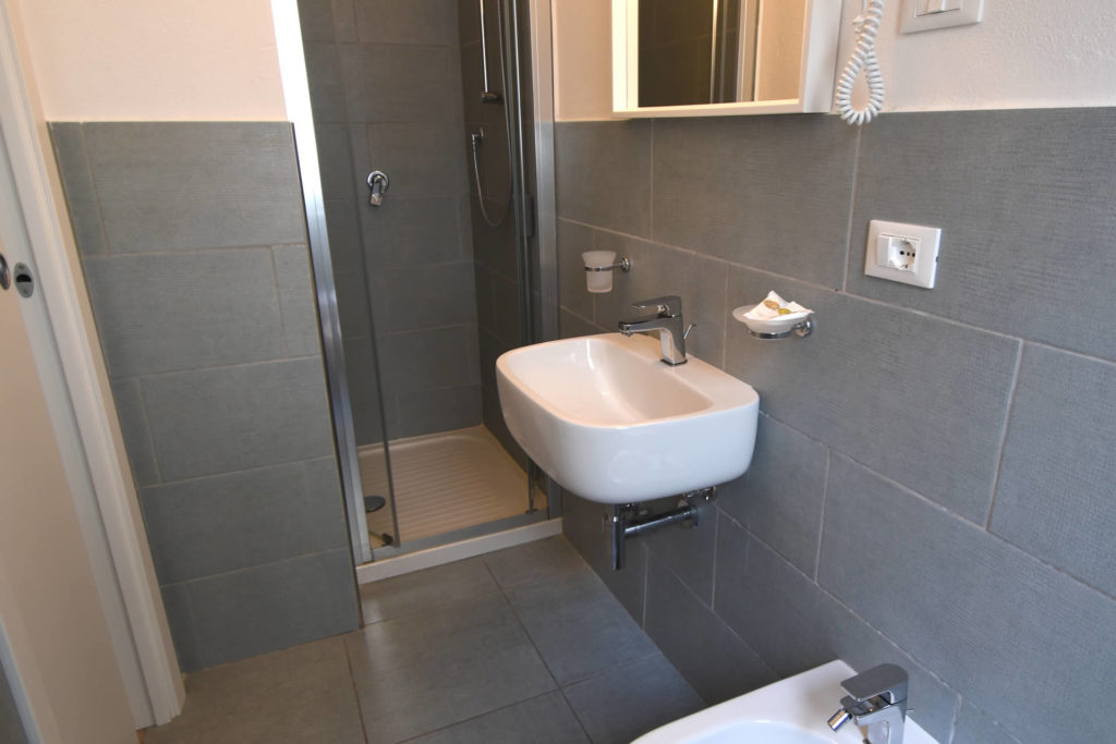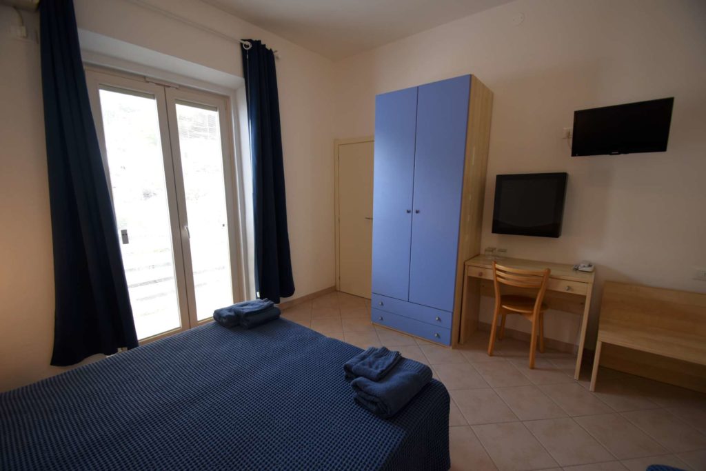 Ogni camera è dotata di aria condizionata, TV a schermo piatto, minifrigo e connessione WiFi gratuita. Il bagno privato dispone di box doccia e asciugacapelli. La porta finestra si apre su una vista mare che rende il soggiorno ancora più piacevole, mentre il parcheggio riservato è incluso nel prezzo della camera.